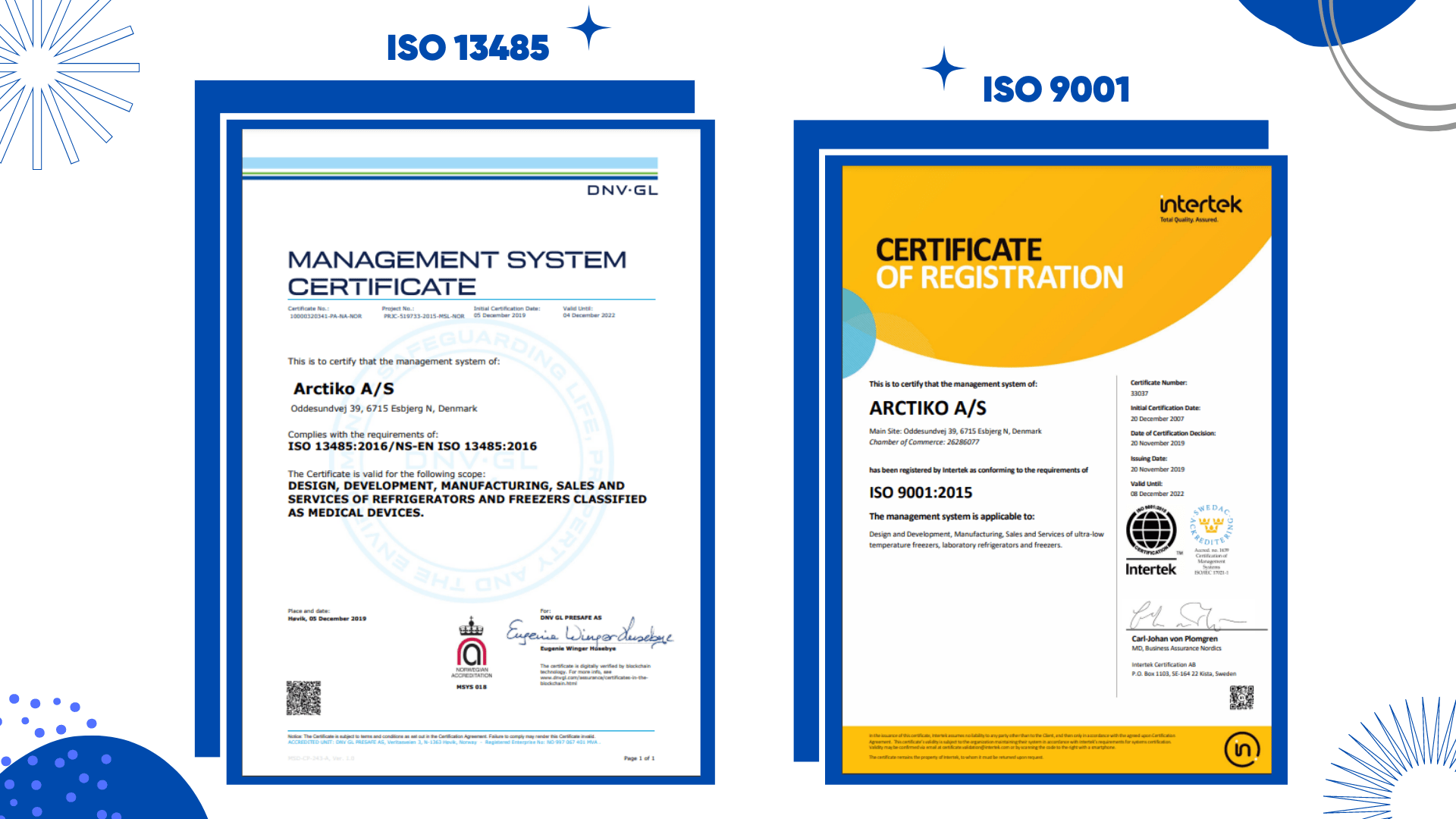 Bằng chứng nhận quốc tế của ARCTIKO về chất lượng sản phẩm