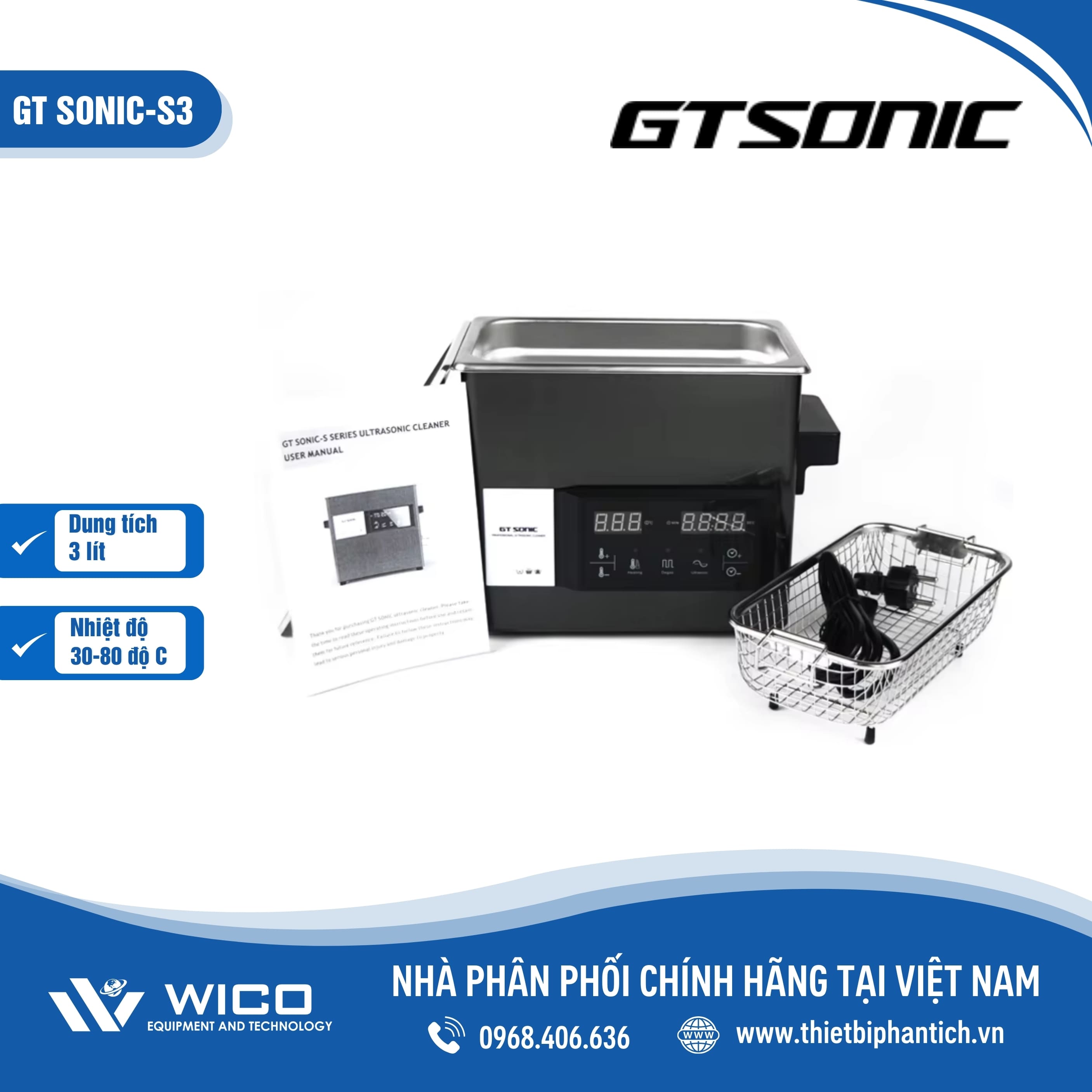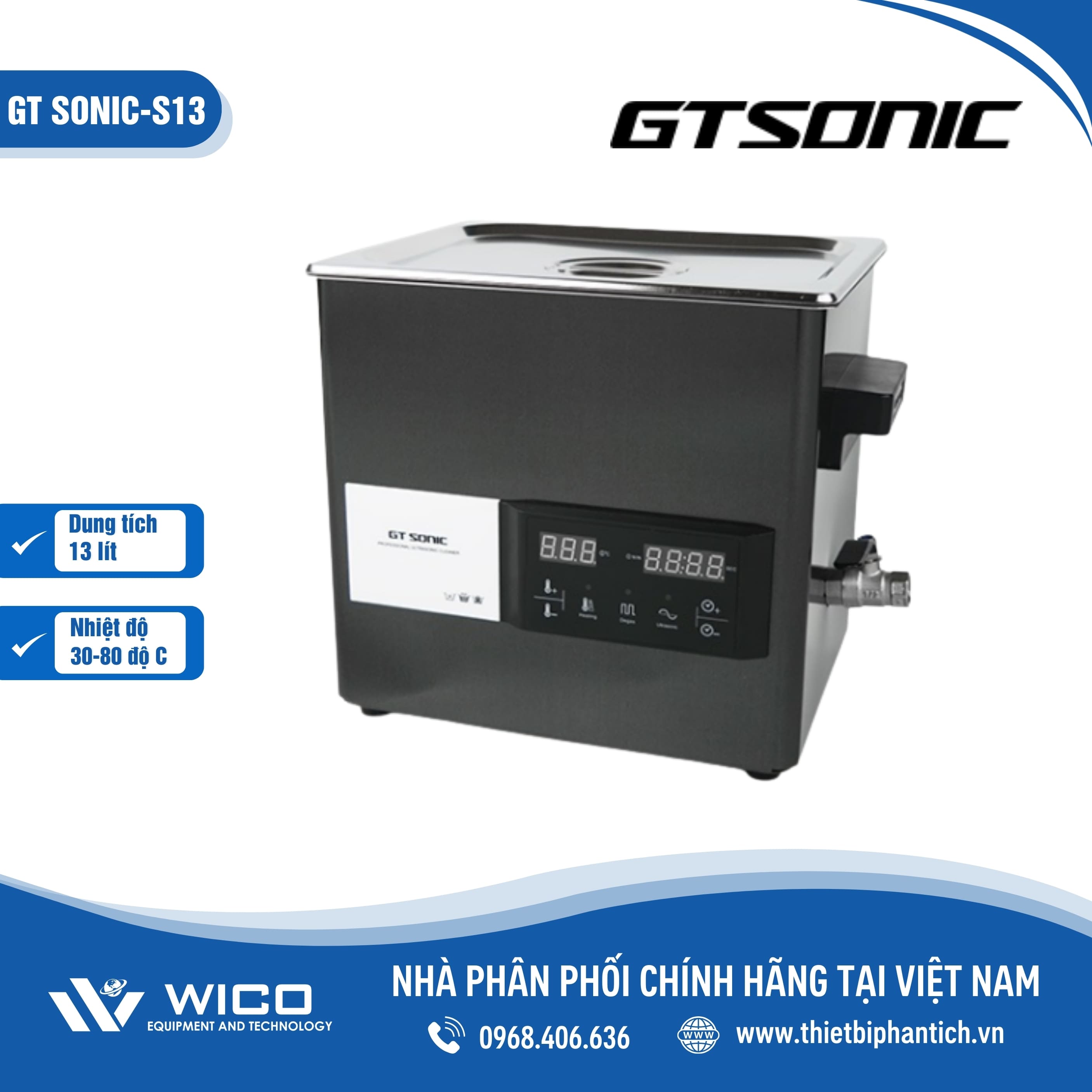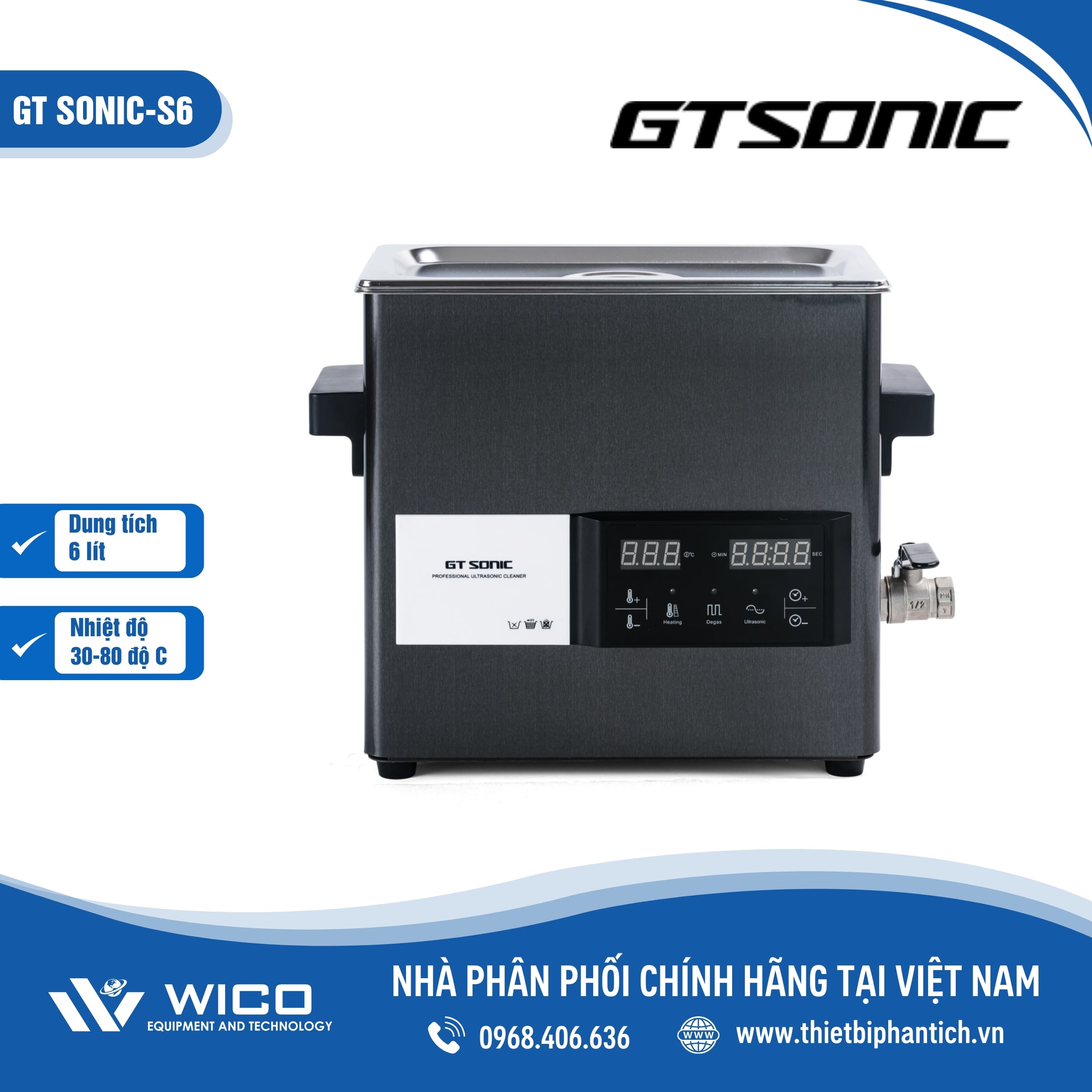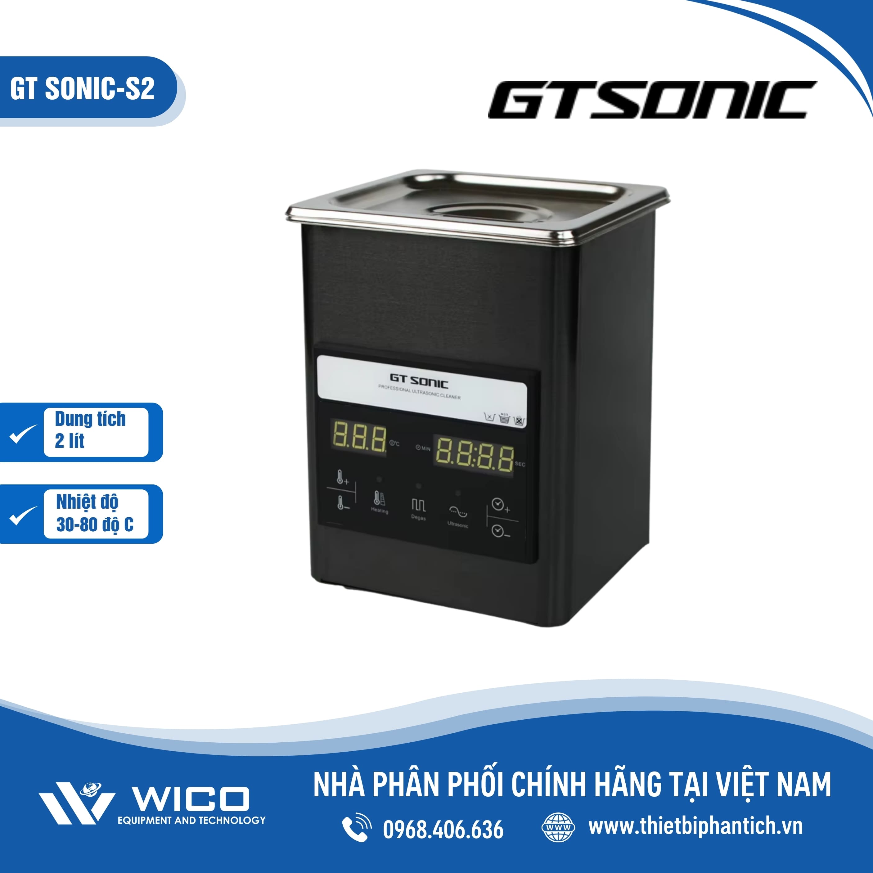 GT SONIC-S Series là Bể rửa siêu âm đa dạng dung tích từ 2-3-6-9-13-20-27 lít. Gia nhiệt cài đặt 30-80 độ C. Bể được ứng dụng rộng rãi trong y tế, nha khoa, phòng thí nghiệm. Sản phẩm do hãng Gtsonic - Trung Quốc sản xuất, được nhập khẩu và phân phối chính hãng bởi Thietbiphantich. Bảo hành 12 tháng, hỗ trợ giao hàng toàn quốc