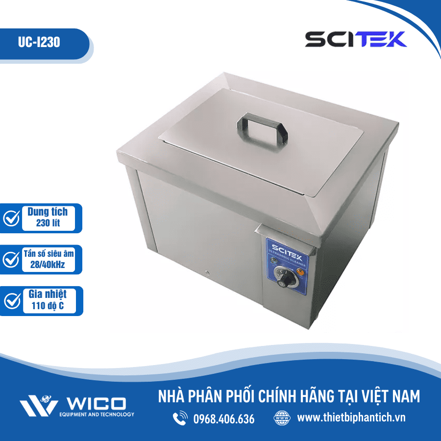 - UC-I230 là Bể rửa siêu âm dung tích 230 lít với 100% sản phẩm chính hãng Scitek - Trung Quốc. Sản phẩm được nhập khẩu và phân phối bởi Thietbiphantich. Bảo hành lên tới 12 tháng. Hỗ trợ giao hàng toàn quốc