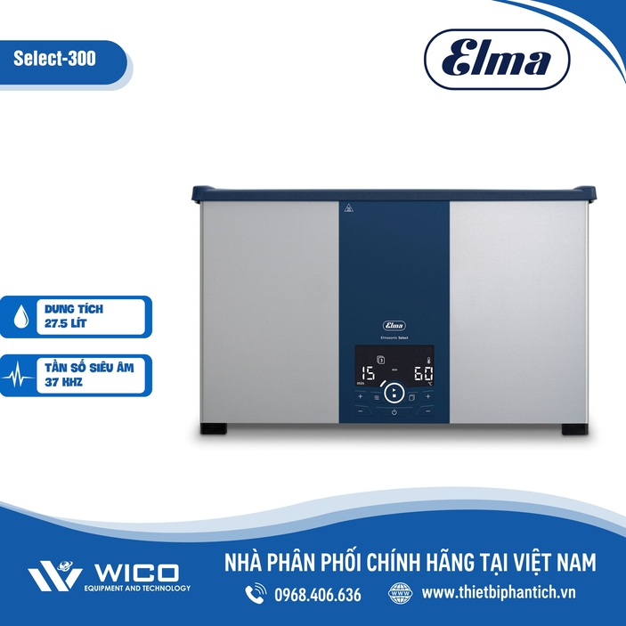 Select Series ⭐ Bể rửa siêu âm có gia nhiệt dung tích 2.7 - 89 lít. Bể được ứng dụng rộng rãi trong y tế, nha khoa, phòng thí nghiệm. Sản phẩm do hãng Elma- Đức sản xuất, được nhập khẩu và phân phối chính hãng bởi Wico Việt Nam. Bảo hành 12 tháng