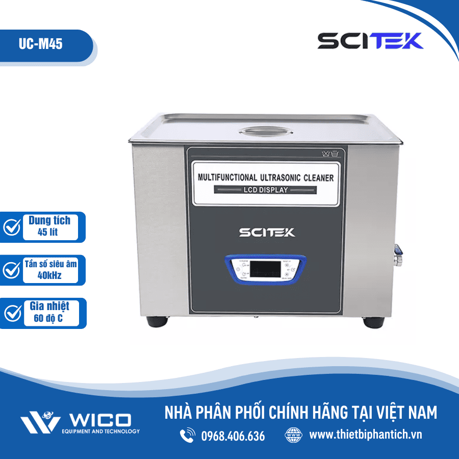 - UC-M45 là Bể rửa siêu âm dung tích 45 lít với 100% sản phẩm chính hãng Scitek - Trung Quốc. Sản phẩm được nhập khẩu và phân phối bởi Thietbiphantich. Bảo hành lên tới 12 tháng. Hỗ trợ giao hàng toàn quốc