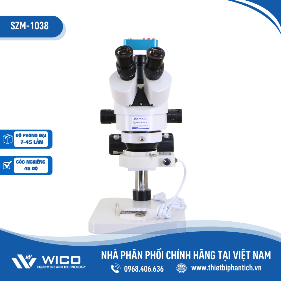 SZM-1038 ⭐ Bộ Kính Hiển Vi Soi Nổi 3 mắt cao cấp SZM45T-B1 kèm Camera Chuyên Dụng 38MP kết nối qua cổng HDMI CCD-38MP do hãng Shine A - Trung Quốc sản xuất. Sản phẩm được nhập khẩu và phân phối chính hãng bởi WICO Việt Nam. Kết nới màn hình / PC vô cùng dễ dàng qua cổng HDMI/ USB 2.0. Cho phép người sử dụng và người quan sát có thể đồng thời quan sát mẫu dễ dàng thông qua màn hình