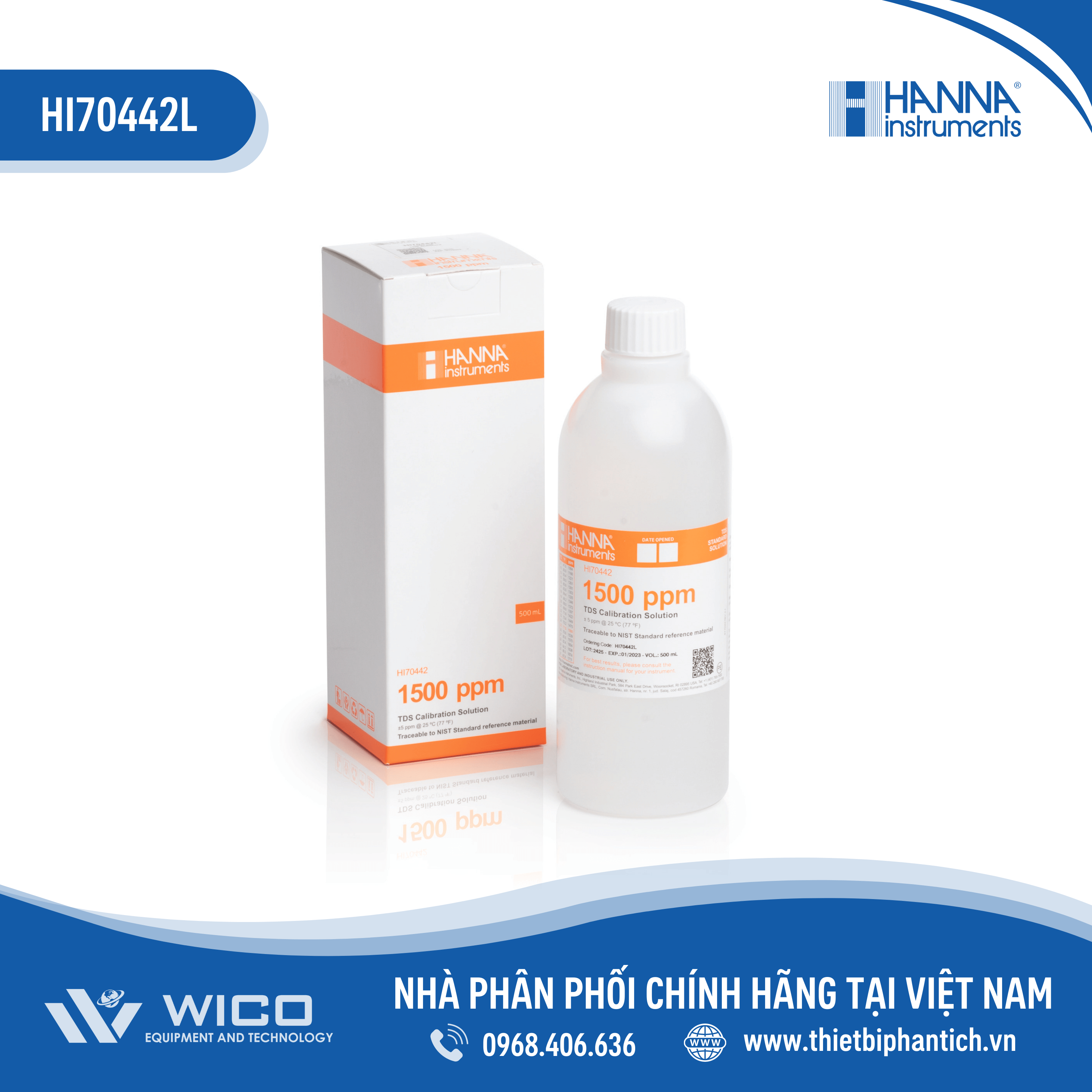 - HI70442L là một dung dịch hiệu chuẩn độ dẫn 1500ppm chất lượng cao được chuẩn hóa cùng với một máy đo độ dẫn điện đã được hiệu chuẩn với kali clorua NIST SRM 2202 (Chất liệu tham chiếu tiêu chuẩn) trong nước khử ion dùng trong phân tích theo tiêu chuẩn ISO 3696 / BS3978.