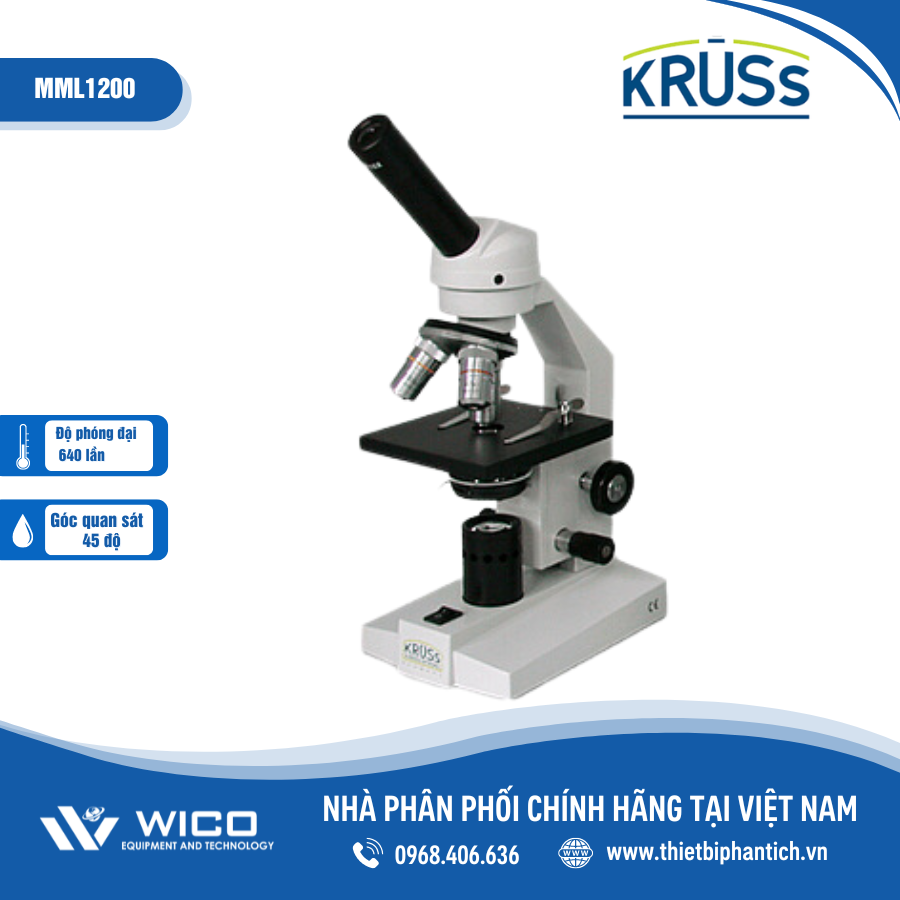 - MML1200 là loại kính hiển vi cao cấp của hãng Krüss (Đức), kính có thị trường rộng, kính hiển vi này được sử dụng rất rộng rãi trong các lĩnh vực như: giáo dục, nông nghiệp, y tế, công nghệ sinh học, dược phẩm, thực phẩm…