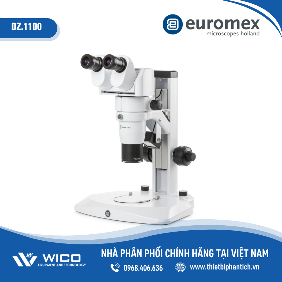 Kính hiển vi soi nổi cao cấp DZ.1100 do hãng Euromex - Hà Lan sản xuất được nhập khẩu và phân phối chính hãng bởi WICO Việt Nam. Kính có khả năng Zoom liên tục cho độ phóng đại 8X đến 80X.