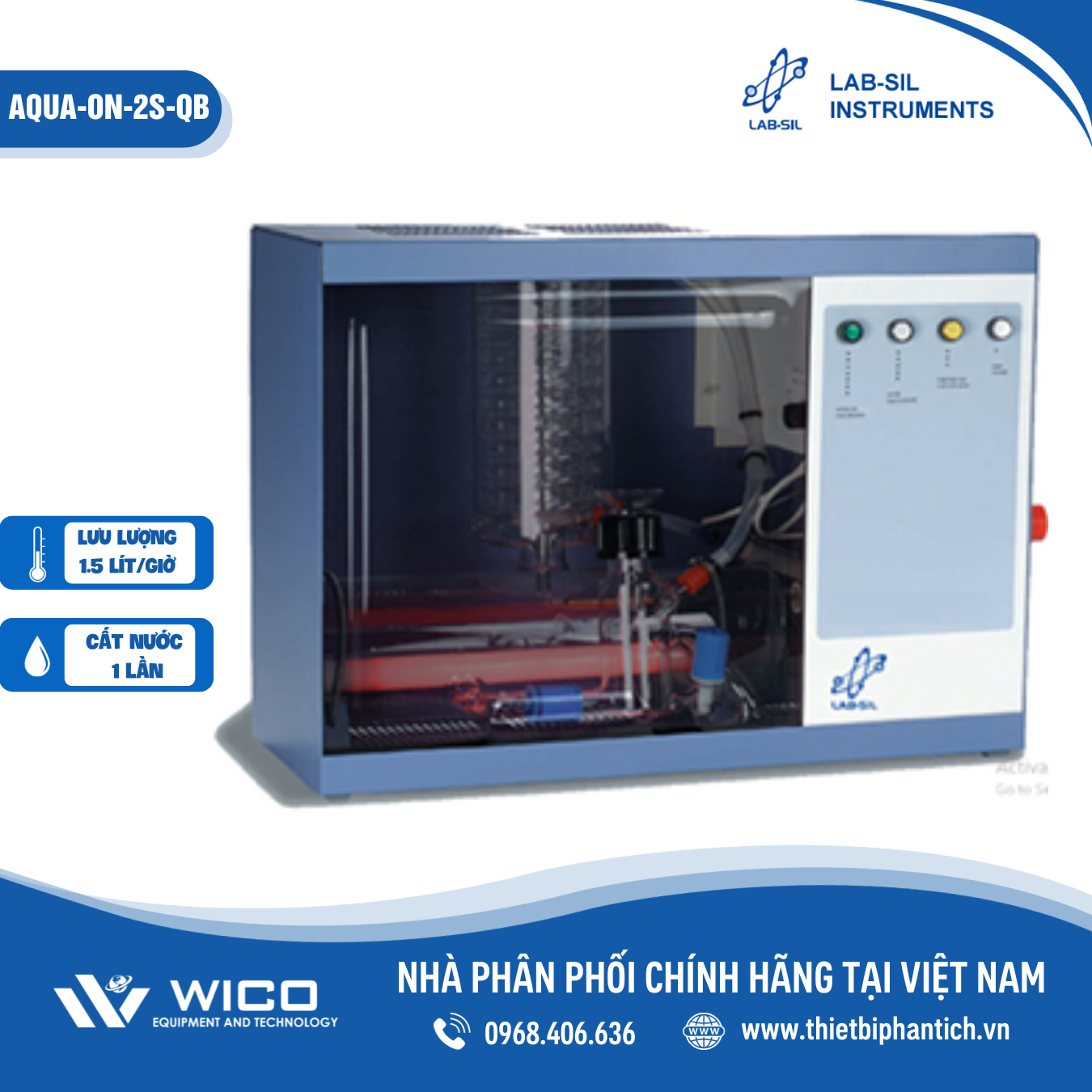- Aqua-On S-QB là máy cất nước 1 lần cao cấp do hãng Lab-sil Ấn Độ thiết kế và chế tạo. Cho lượng nước ra ổn định, đạt tiêu chuẩn và đặc biệt không chứa Pyrogen.