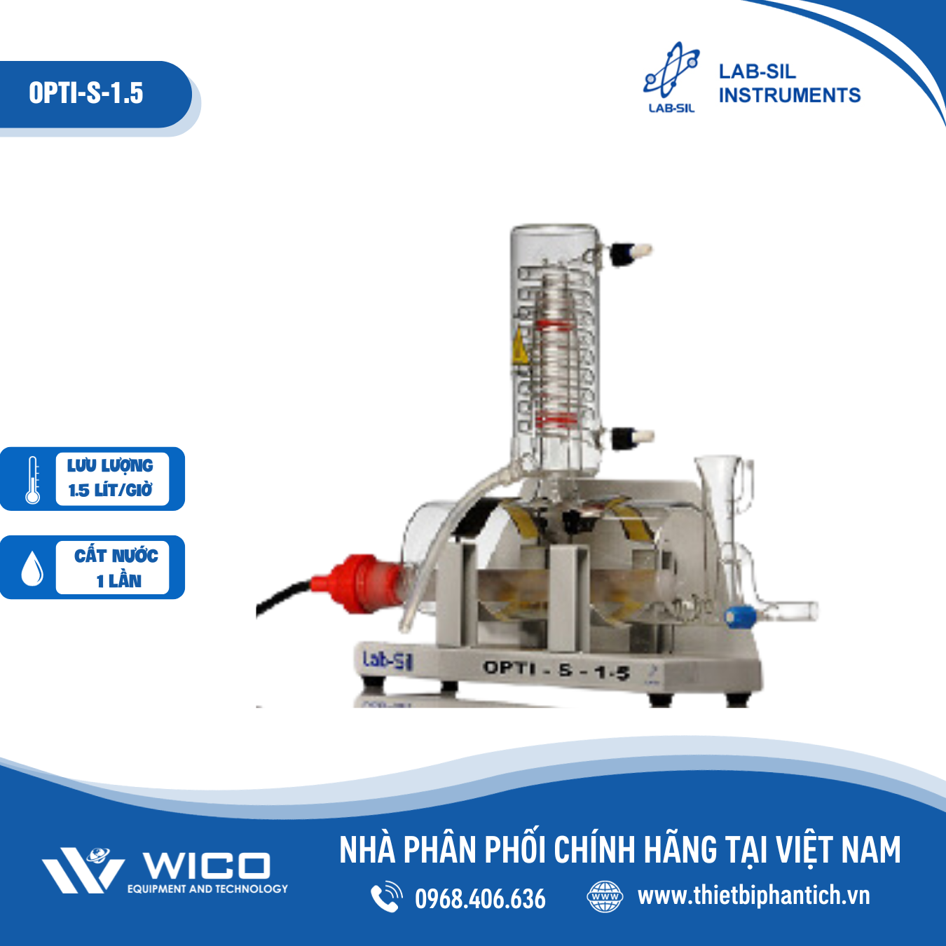 - Opti-S là máy cất nước 1 lần do hãng Labsil - Ấn Độ thiết kế chế tạo. Máy có thiết kế nhỏ gọn có thể treo tường hoặc để bàn. Tất cả các bộ phận tiếp xúc với nước đầu vào và nước cất đầu ra đều bằng thuỷ tinh cao cấp, chịu nhiệt và chống va đập tốt.