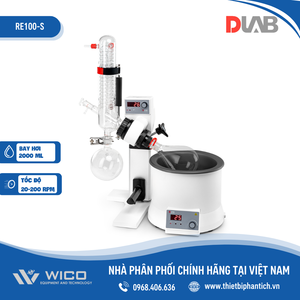 - RE100-S là thiết bị cô quay chân không 1 lít do hãng Dlab Mỹ thiết kế chế tạo. Được nhập khẩu và phân phối chính hãng bởi Thietbiphantich.Vn.