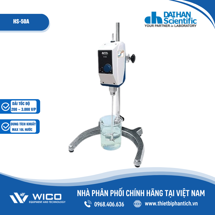 - HS-50A / HS-120A là Máy khuấy đũa chính hãng Daihan Hàn Quốc có khả năng khuấy tối đa 10 lít/ 20 lít nước. Sản phẩm được nhập khẩu và phân phối chính hãng bởi Thietbiphantich.Vn