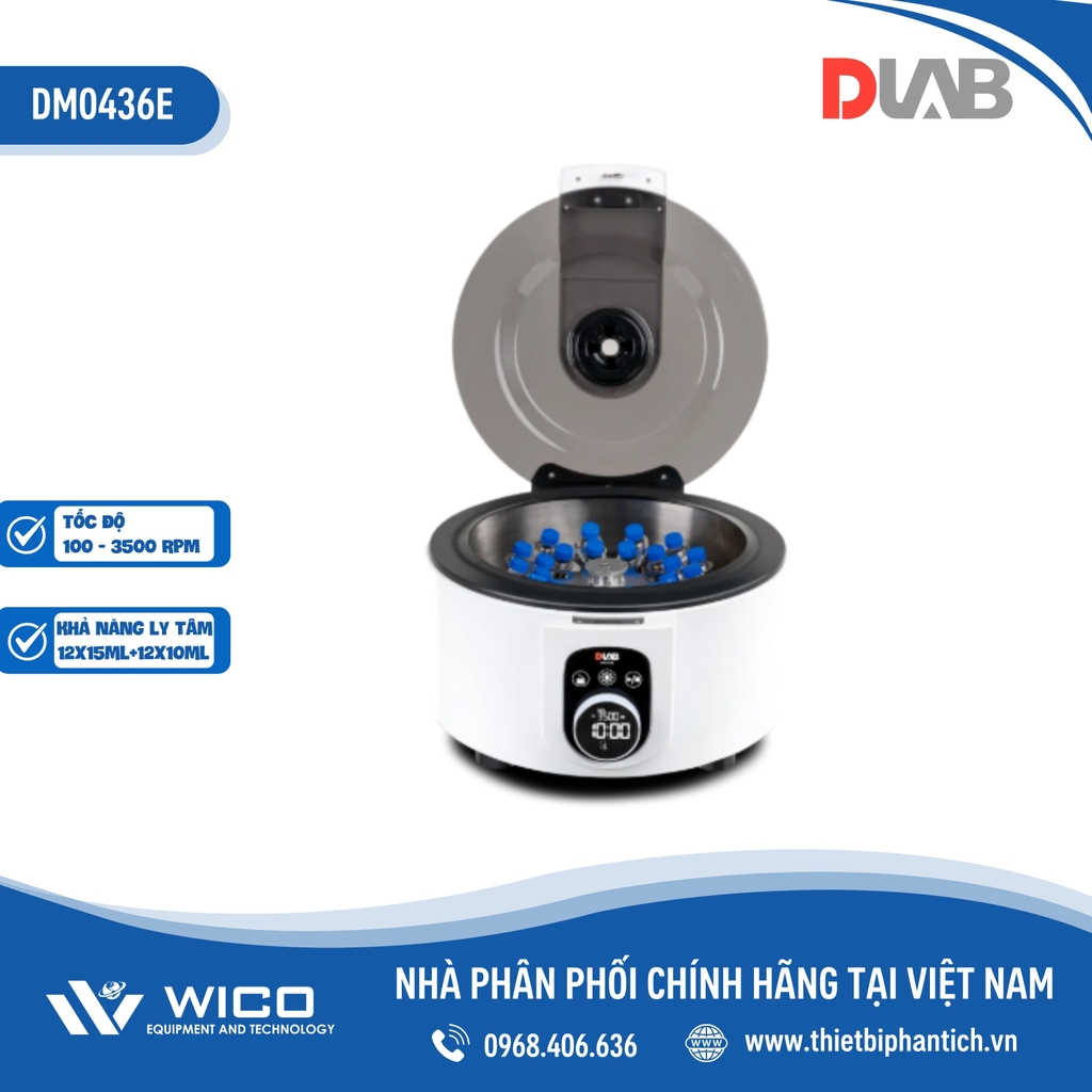 DM0436E là máy ly tâm 24 ống bao gồm 12 × 10 ml (vòng trong) và 12 × 15 ml (vòng ngoài), tốc độ tối đa 3500 vòng/ phút do hãng Dlab - Mỹ sản xuất. Màn hình hiển thị LCD. Máy sử dụng động cơ DC không chổi than không cần bảo trì. Được nhập khẩu và phân phối chính hãng bởi Thietbiphantich. Bảo hành 12 tháng
