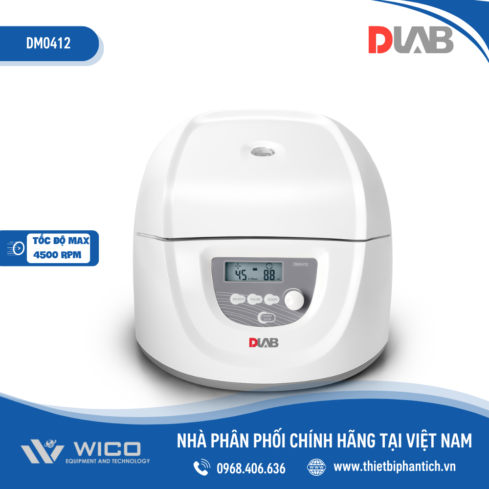 - DM0412 là Máy ly tâm để bàn tốc độ tối đa 4500 vòng/ phút do hãng Dlab Mỹ thiết kế chế tạo. Được nhập khẩu và phân phối chính hãng bởi Thietbiphantich.Vn.