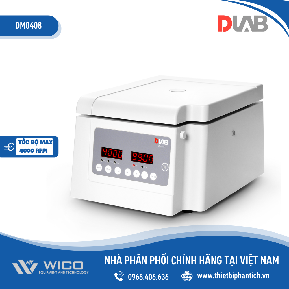 - DM0408 là Máy ly tâm để bàn tốc độ tối đa 4000 vòng/ phút do hãng Dlab Mỹ thiết kế chế tạo. Được nhập khẩu và phân phối chính hãng bởi Thietbiphantich.Vn.