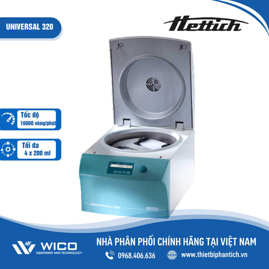 Universal 320 🌟 Máy ly tâm đa năng do hãng Hettich - Đức sản xuất. Bộ điều khiển vi xử lý, cài đặt qua phím bấm các thông số điều khiển có thể chọn: tốc độ, thời gian ly tâm, nhiệt độ, cấp độ gia tốc, cấp độ giảm tốc, bán kính, lực ly tâm. Sản phẩm được nhập khẩu và phân phối chính hãng bởi Wico Việt Nam. Bảo hành lên tới 12 tháng