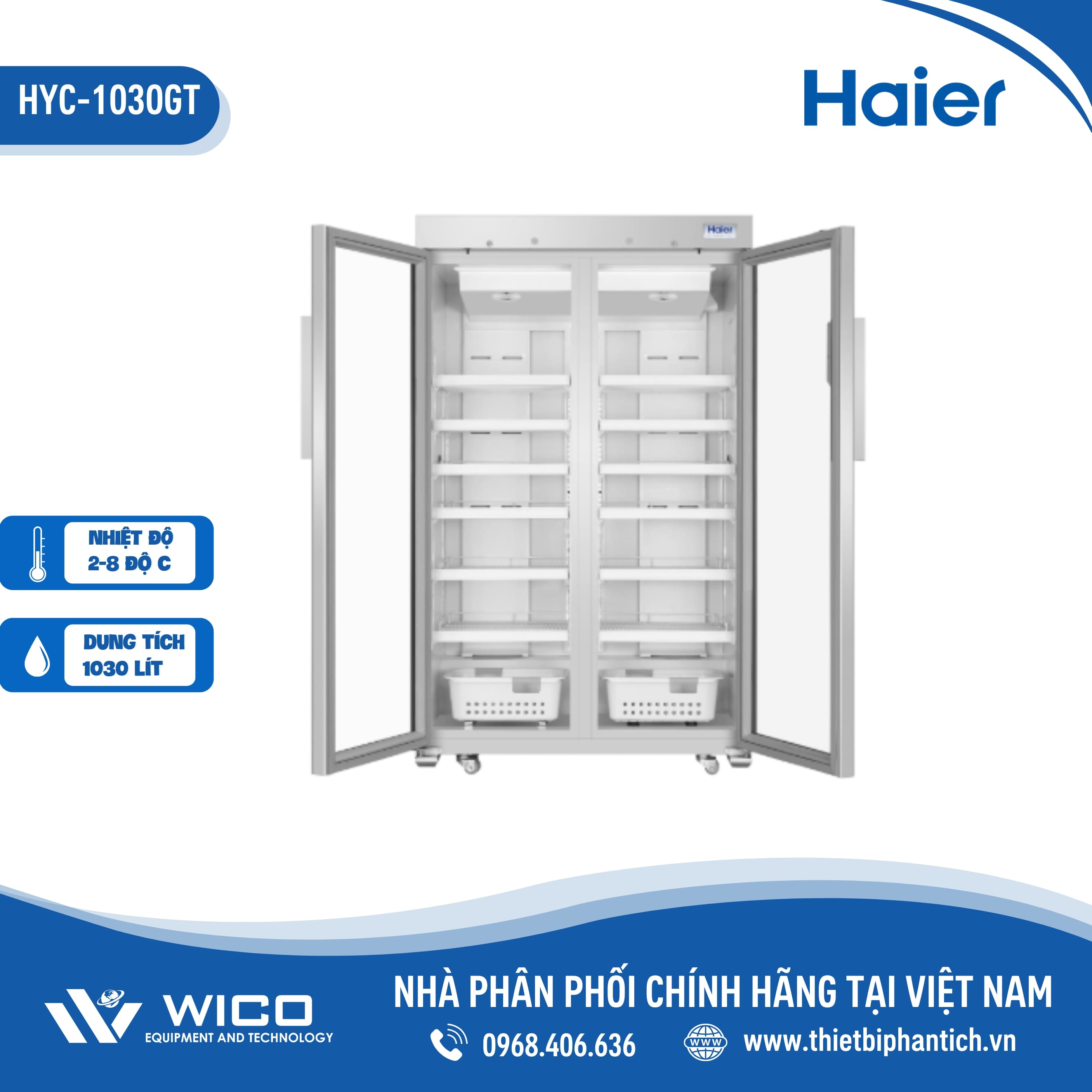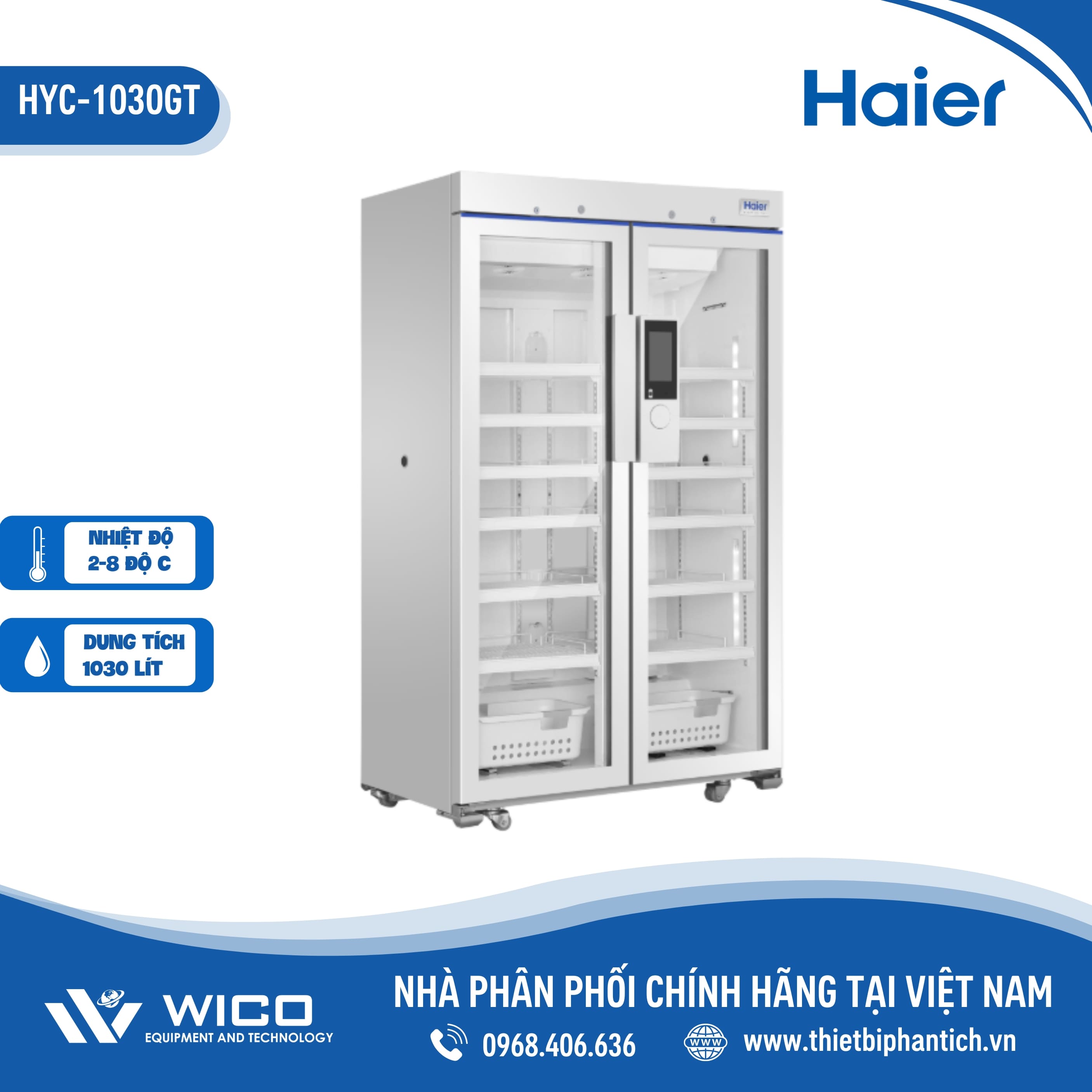 HYC-1030GT 🌟 Là dòng tủ bảo quản dược phẩm/vắc xin kiểu đứng do hãng Haier Biomedical sản xuất với nhiệt độ ổn định từ 2-8 độ C. Được nhập khẩu và phân phối chính hãng bởi Thietbiphantich.vn. Tủ được sử dụng để bảo quản vắc xin, huyết tương, sinh phẩm trong lĩnh vực y tế, công nghệ sinh học, khoa học đời sống và một số sản phẩm khác trong công nghiệp.