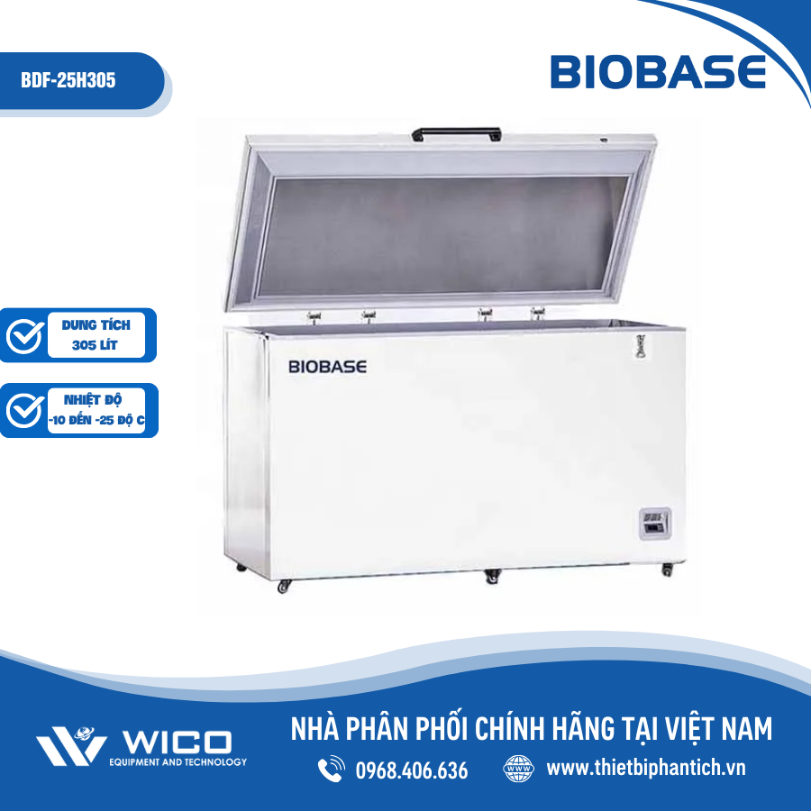 BDF-25H305 🌟 Tủ Lạnh Âm Sâu dải nhiệt độ -10 đến -25 Độ C với dung tích 305 lít. Thiết kế kiểu tủ ngang cửa trên. Do Biobase thiết kế chế tạo. Được nhập khẩu nguyên chiếc bởi bởi Thietbiphantich.Vn