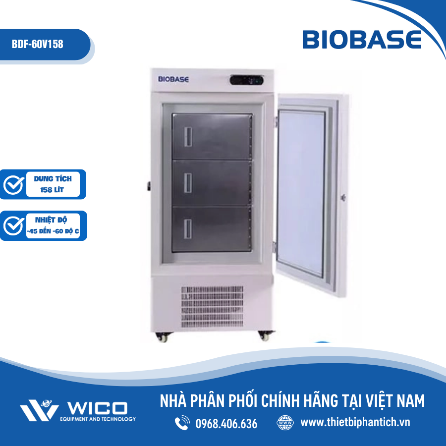 - BDF-60V58/ BDF-60V108/ BDF-60V158/ BDF-60V398 là tủ lạnh âm sâu -60 độ C do hãng Biobase thiết kế chế tạo. Được nhập khẩu và phân phối chính hãng bởi Thietbiphantich.Vn. Tủ được sử dụng bảo quản Vắc xin hoặc các mẫu yêu cầu bảo qaunr âm sâu chẳng hạn như thí nghiệm khoa học ở nhiệt độ thấp, bảo quản tiểu cầu (plasma), vật liệu sinh học, đặc tính y sinh của các sản phẩm quân sự. Phù hợp cho các viện nghiên cứu, công nghiệp điện tử, công nghiệp kỹ thuật hóa học, bệnh viện, trạm vệ sinh và chống sốt rét, phòng thí nghiệm đại học, ngành công nghiệp quân sự.