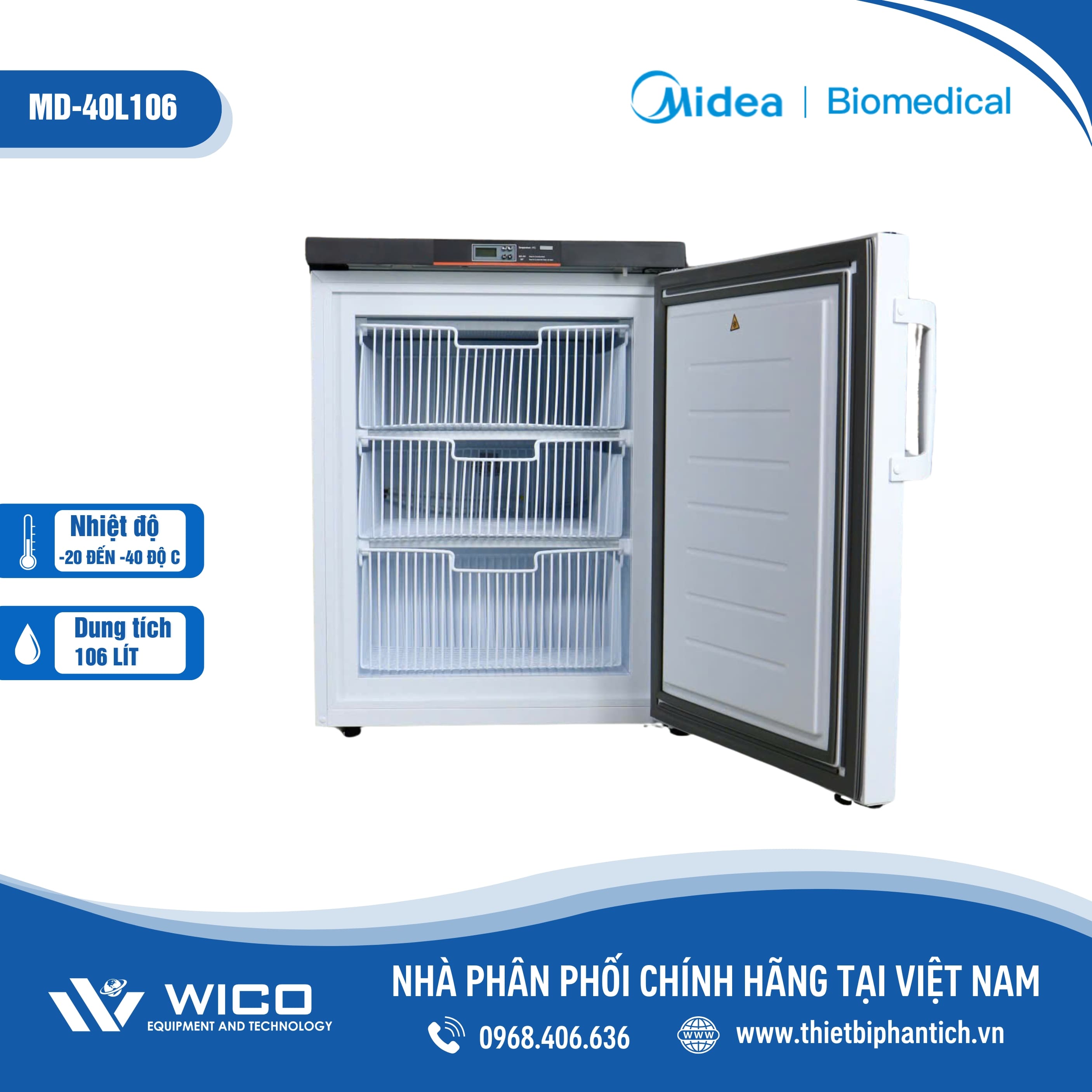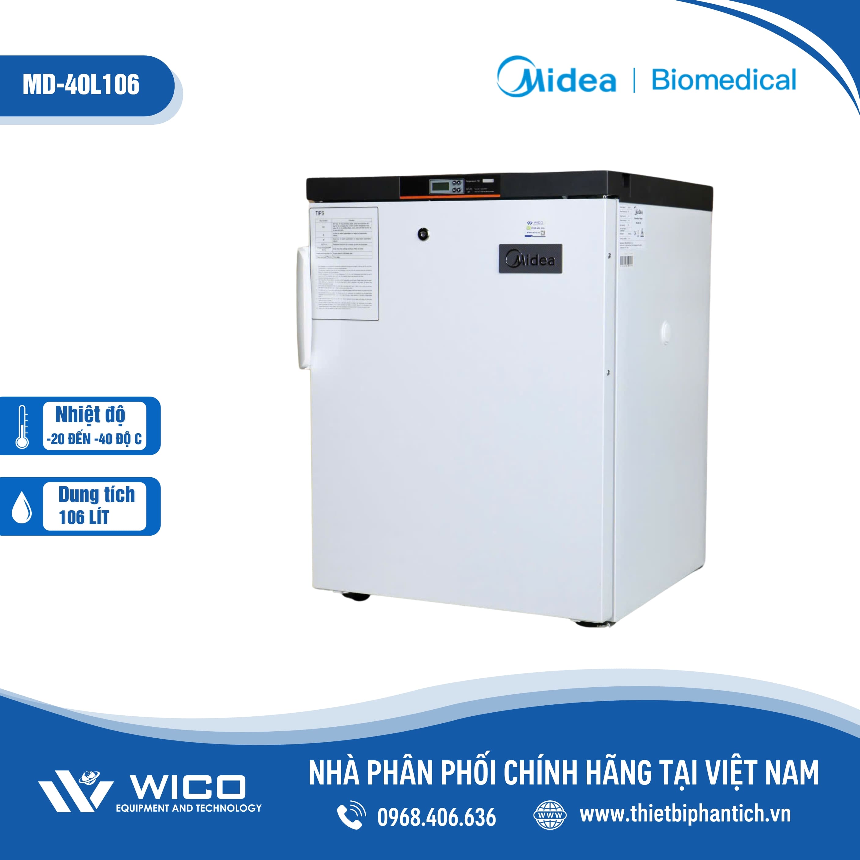 - Tủ lạnh âm sâu MD-40L106 dung tích 106 lít do hãng Midea sản xuất, được nhập khẩu chính hãng bởi Thietbiphantich.