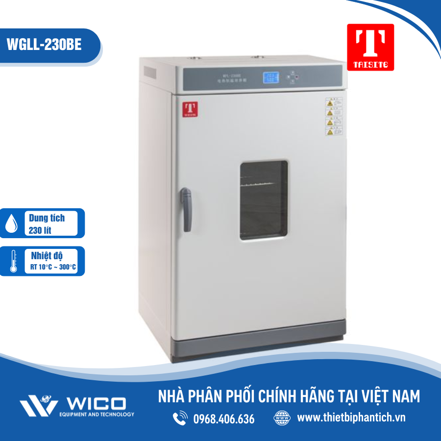 - WGLL-230BE là tủ sấy đối lưu cưỡng bức dung tích 230 lít do hãng Taisite thiết kế chế tạo được nhập khẩu và phân phối chính hãng bởi Thietbiphantich.Vn